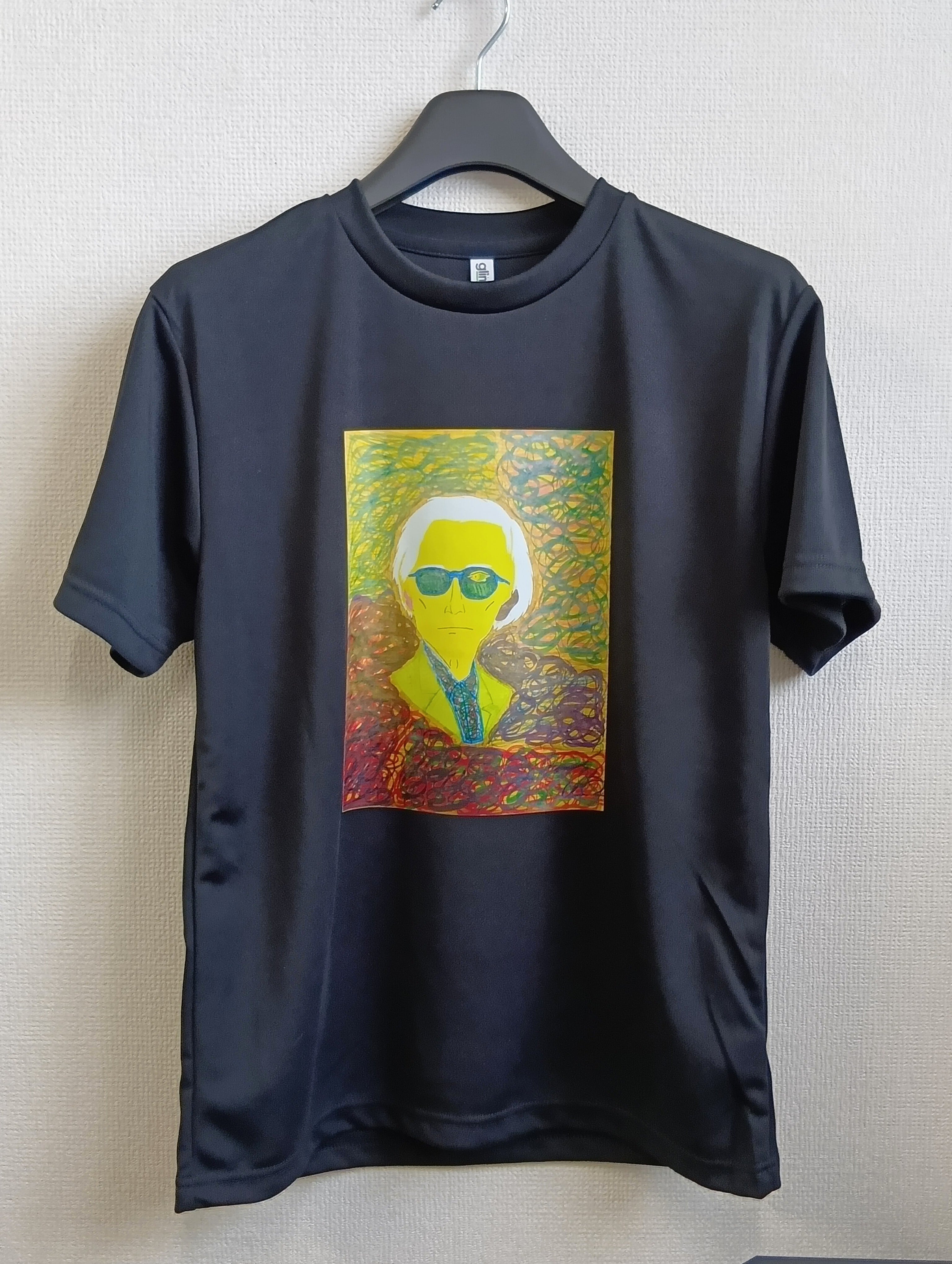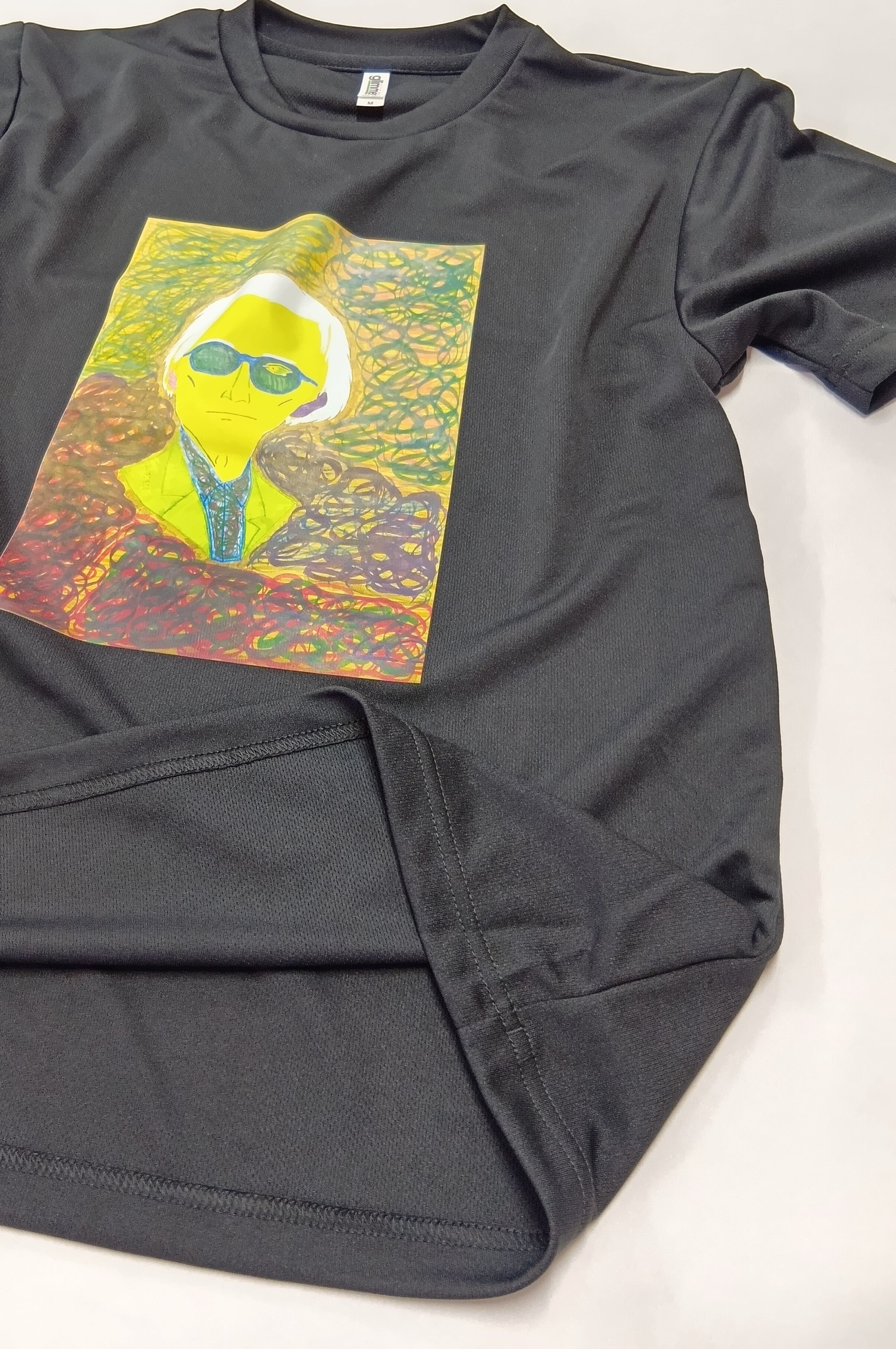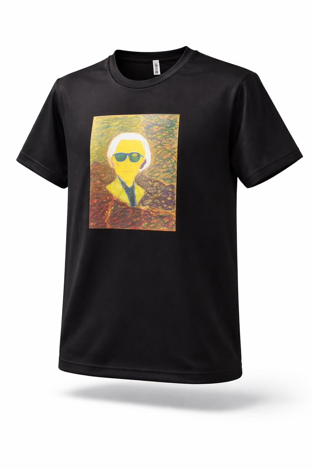 アーティストが描いた印象的な”人物”デザインの黒Tシャツ。